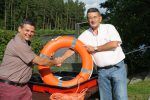 Für die Sicherheit der Badegäste im Selber Waldbad „Langer Teich“ spendete dieser Tage der Selber Unternehmer und langjähriger aktiver Rettungsschwimmer der Ortsgruppe Selb, Kondrad Schmidling, Inhaber der Firma Ceramic Info Center, einen aufstellbaren, mehrere hundert Euro teueren Rettungsring.